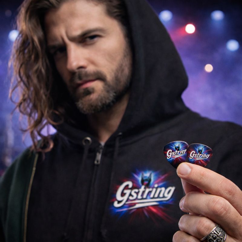 Featuring the unmistakable G-STRING lightning logo, these picks deliver grip, control, and just the right amount of attitude. Whether you’re tearing through solos, holding down the rhythm, or dramatically posing between chords, these are the picks you want in your pocket.